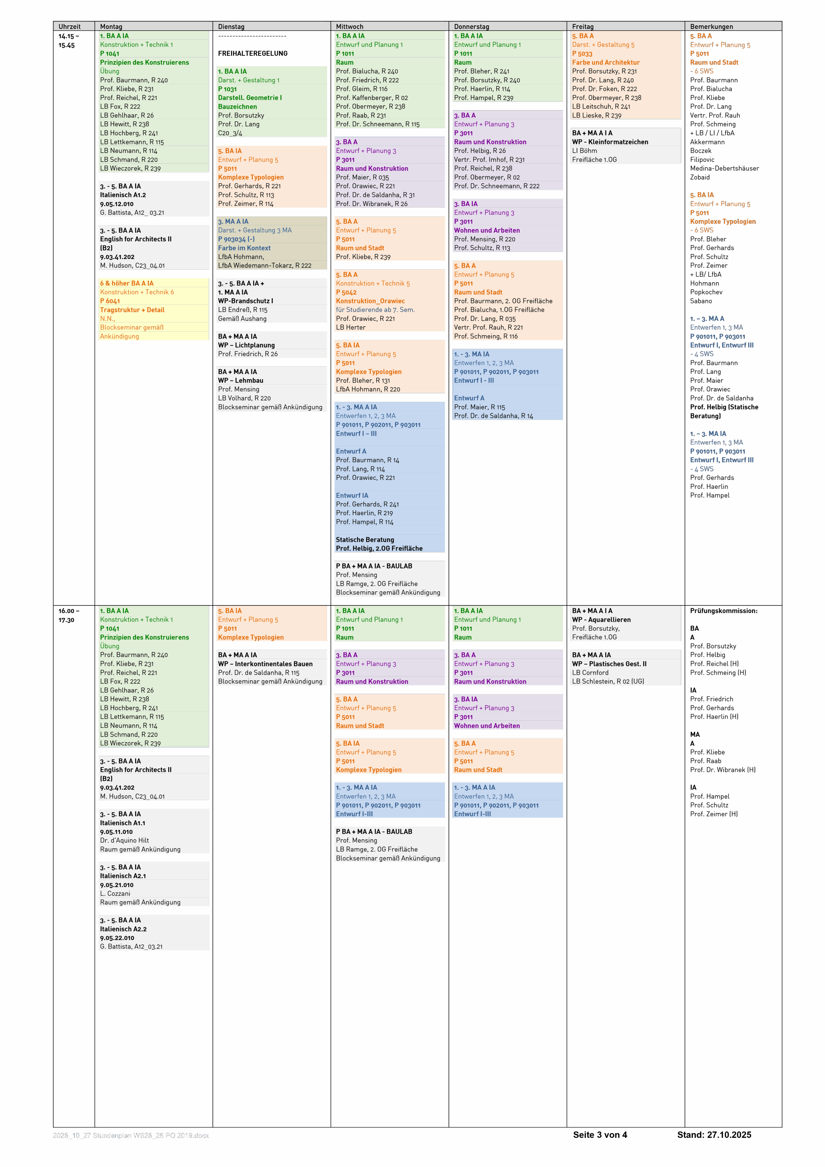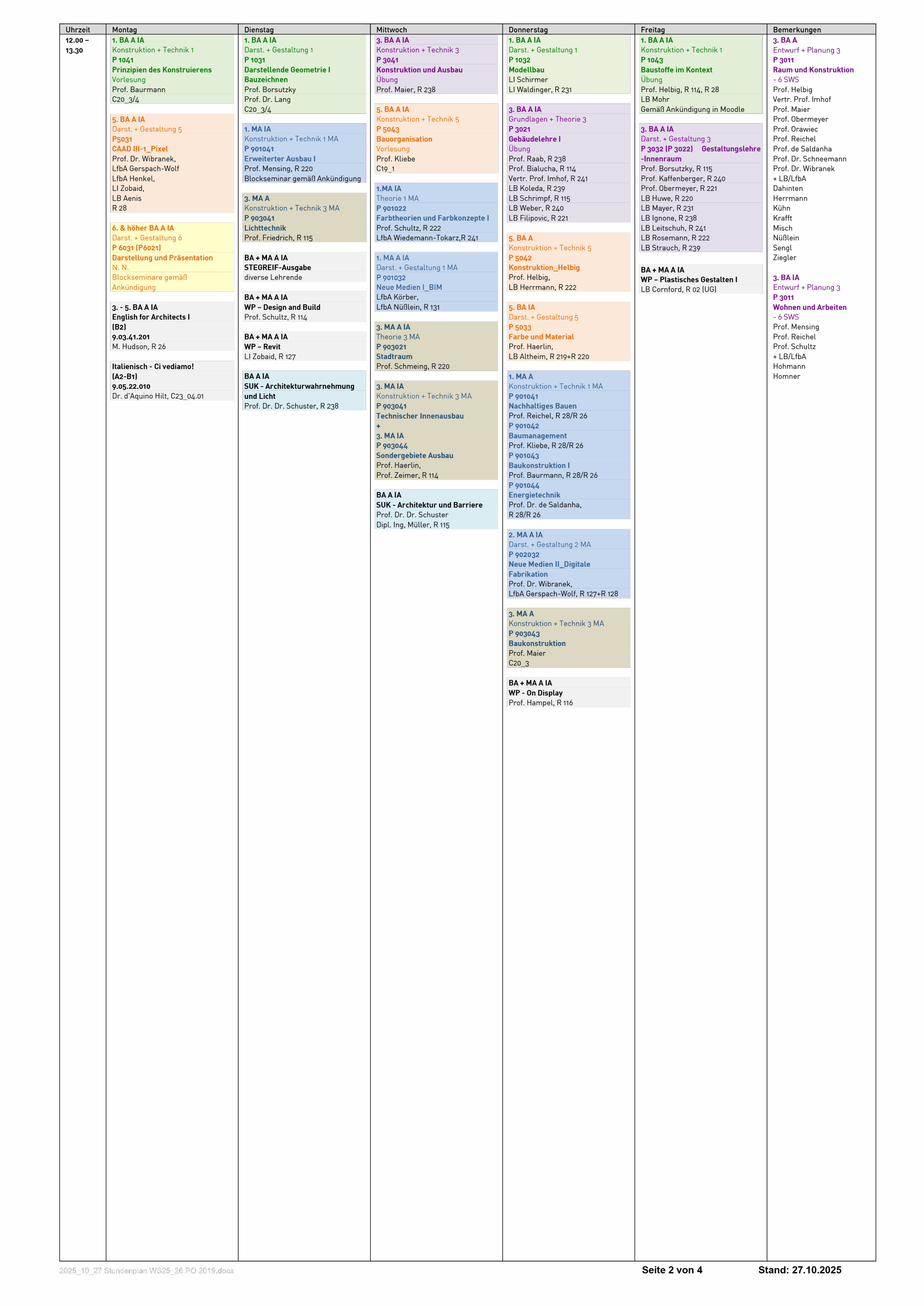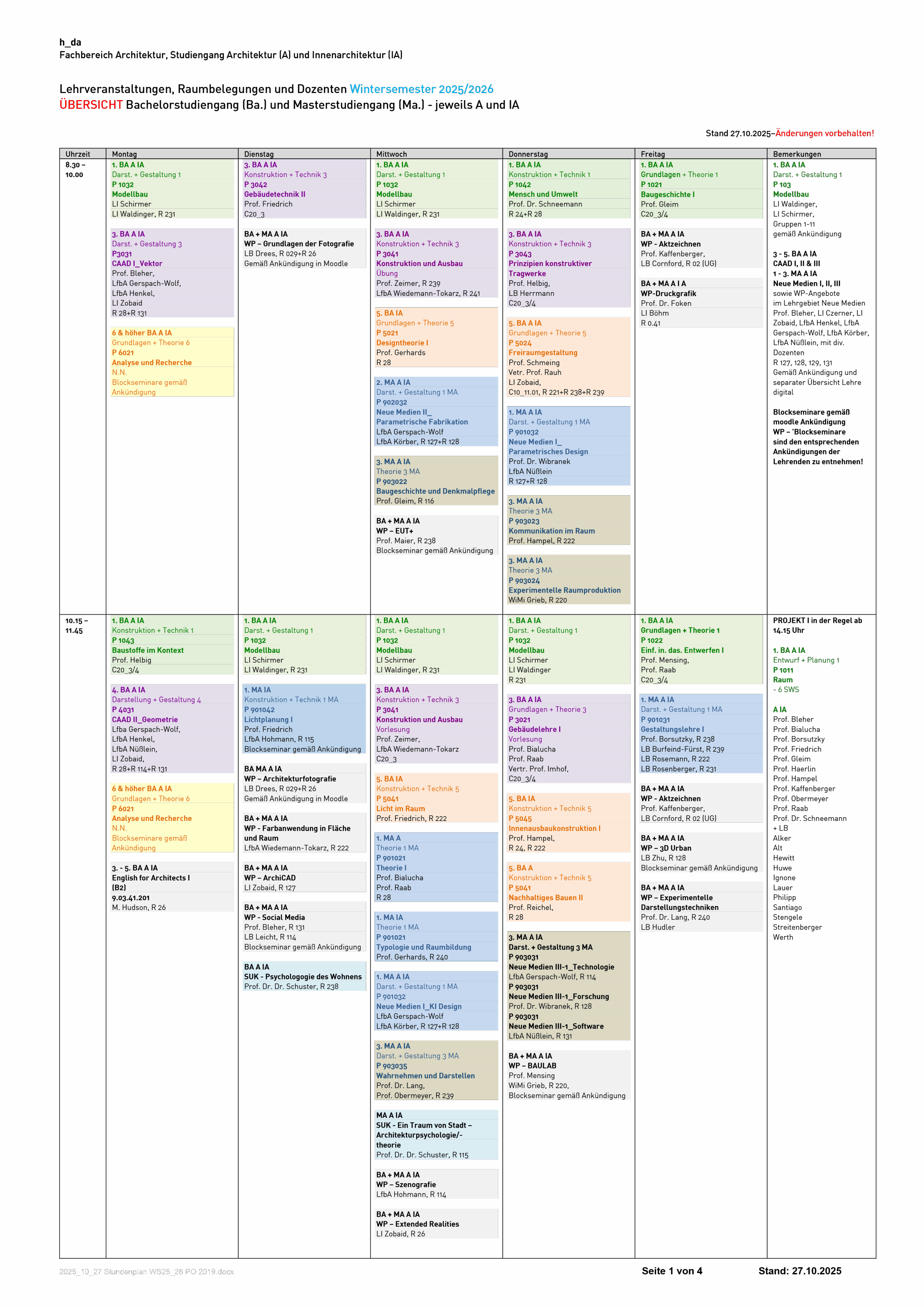 Den aktuellen Stundenplan kannst du dir auch herunterladen: Stundenplan WiSe 2025-26 (Stand: 27.10.2025).