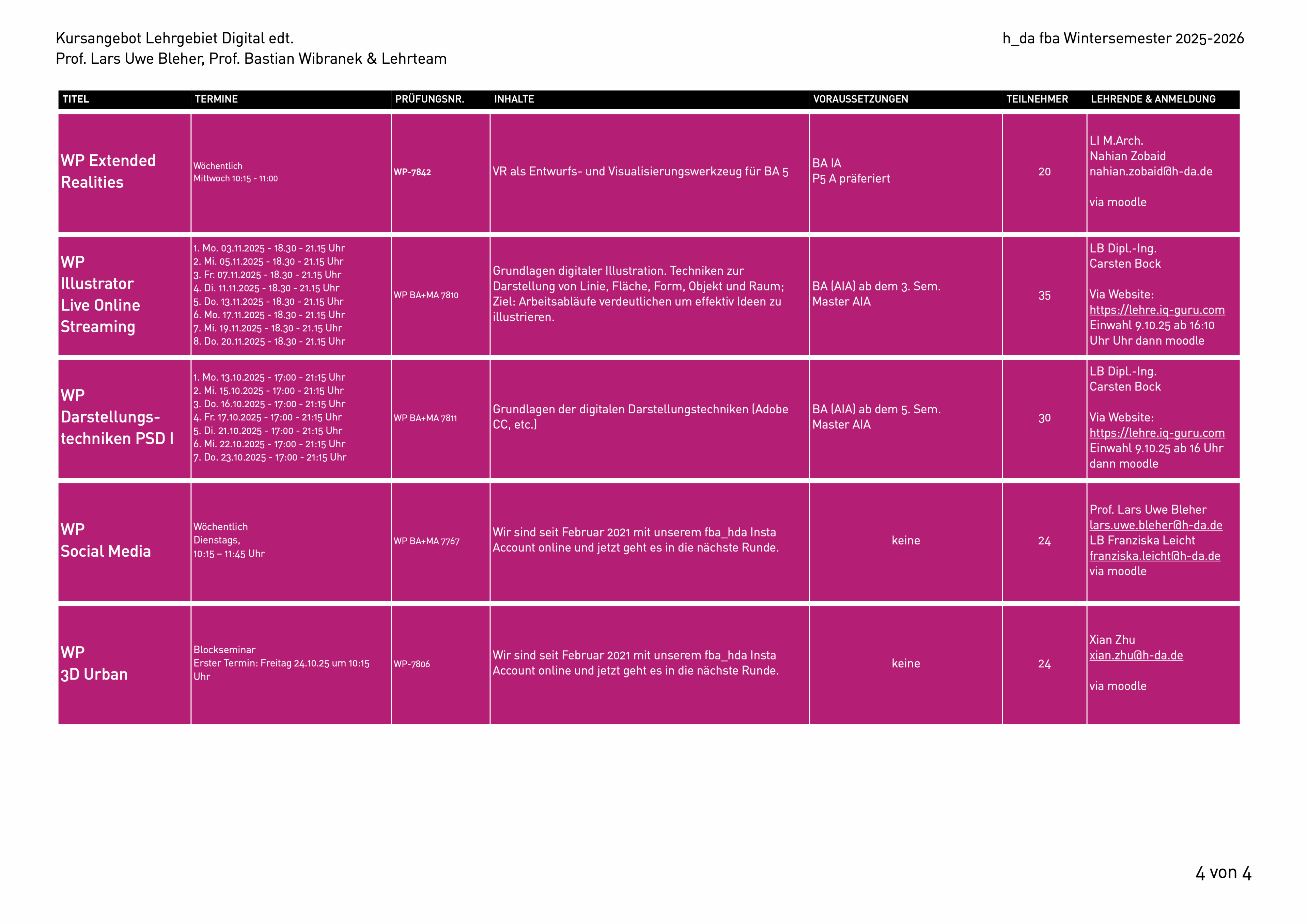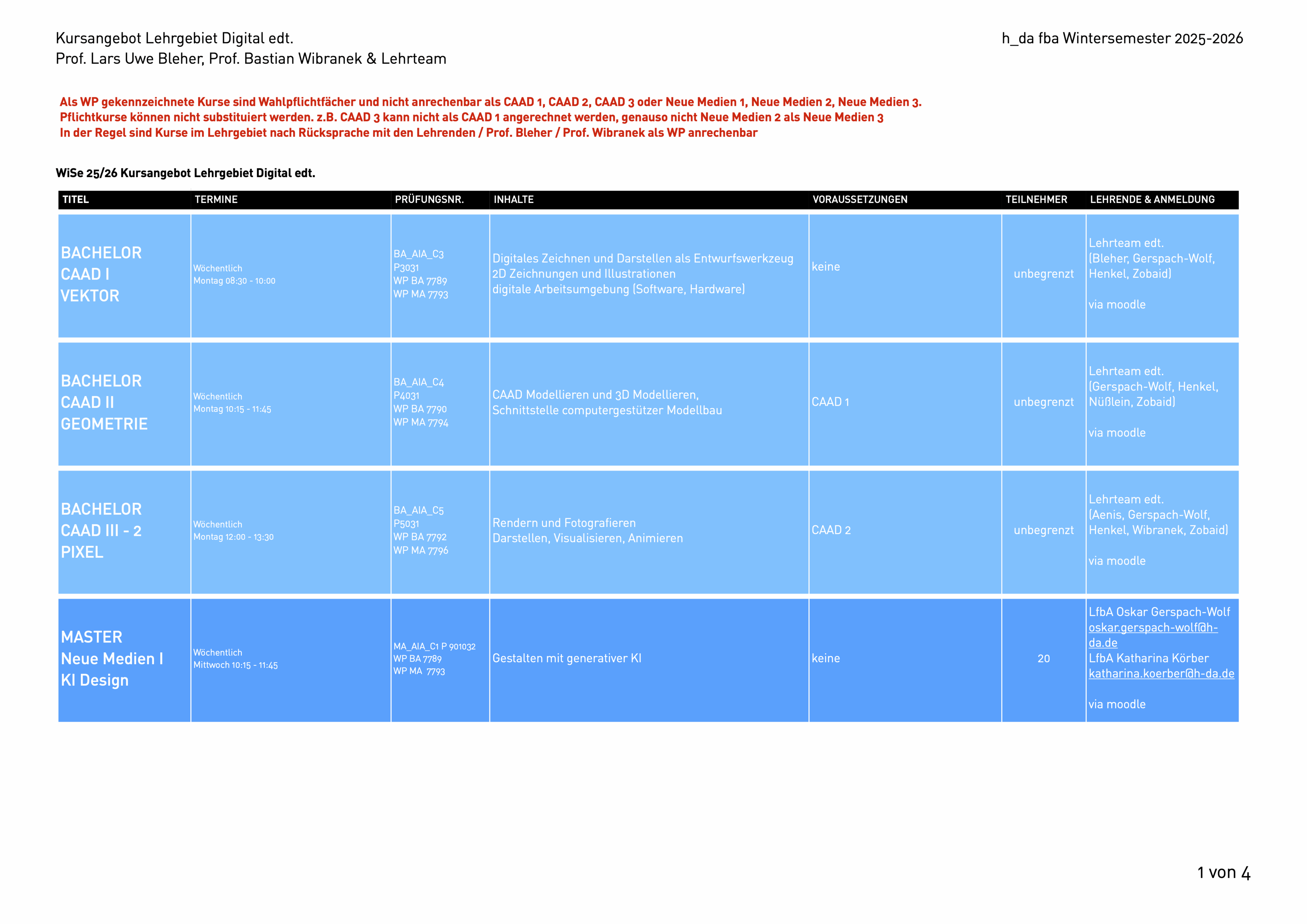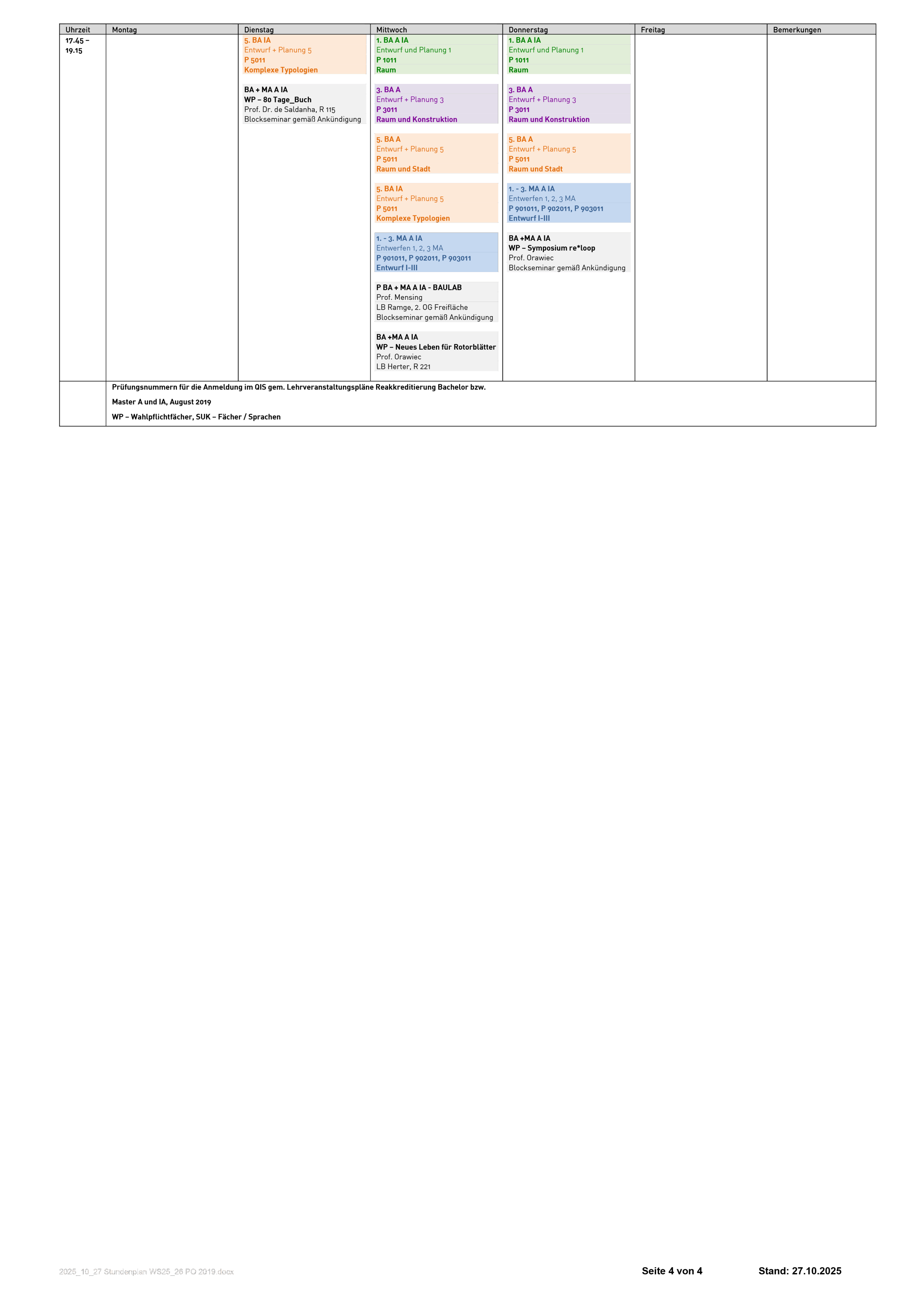 Den aktuellen Stundenplan kannst du dir auch herunterladen: Stundenplan WiSe 2025-26 (Stand: 27.10.2025).