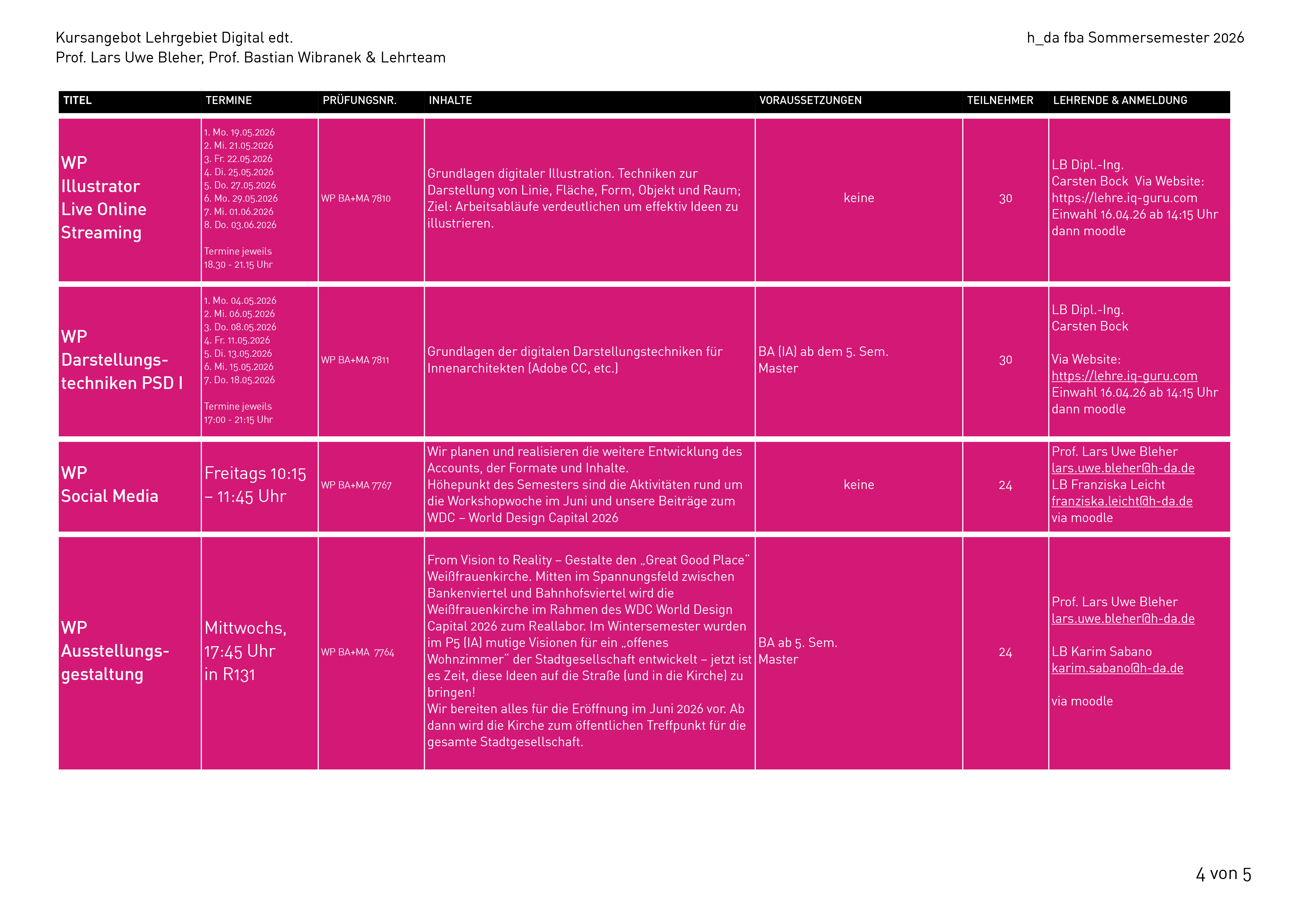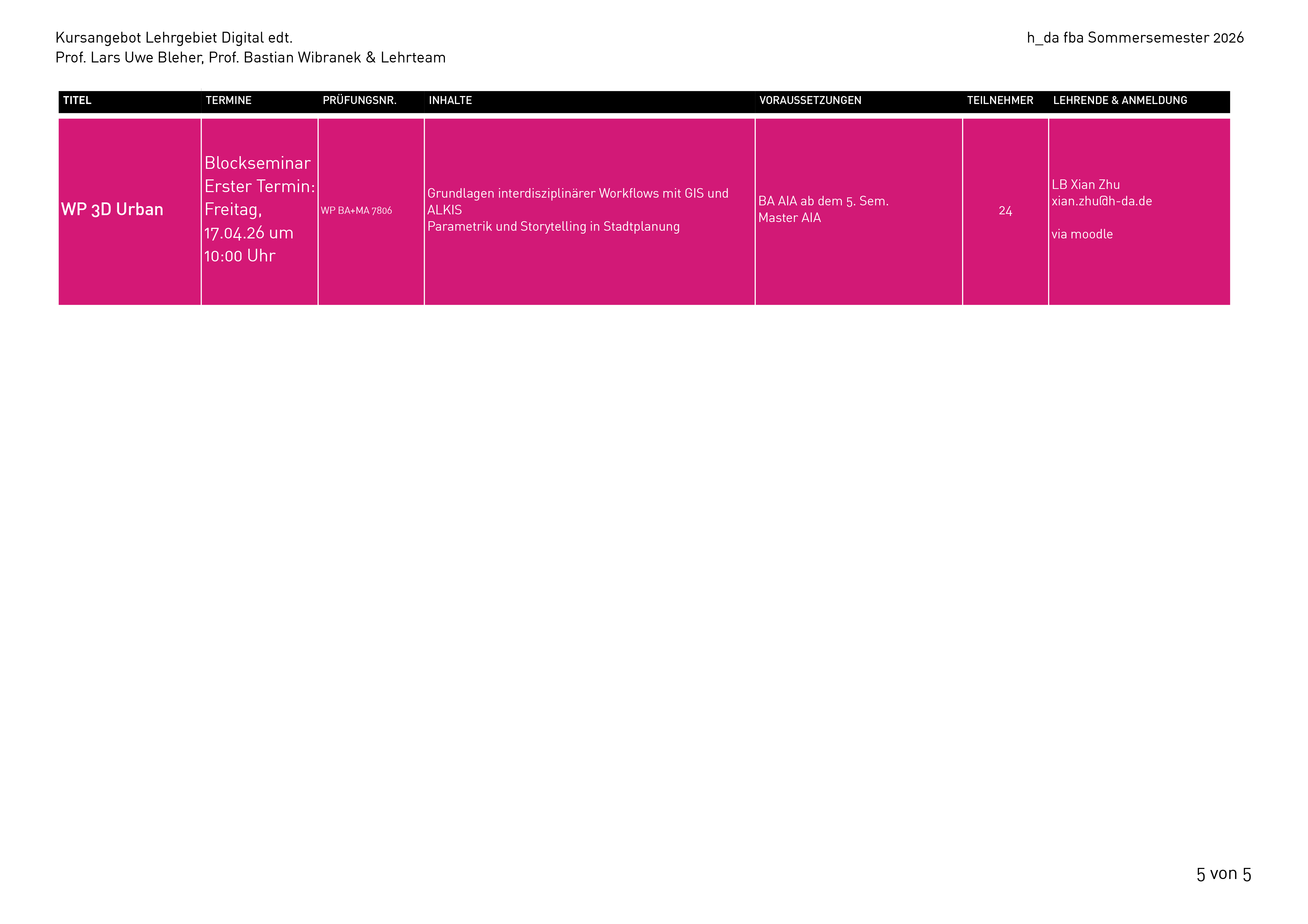 Den aktuellen Stundenplan kannst du dir auch herunterladen: Stundenplan SoSe 2026 (Stand: 15.04.2026).