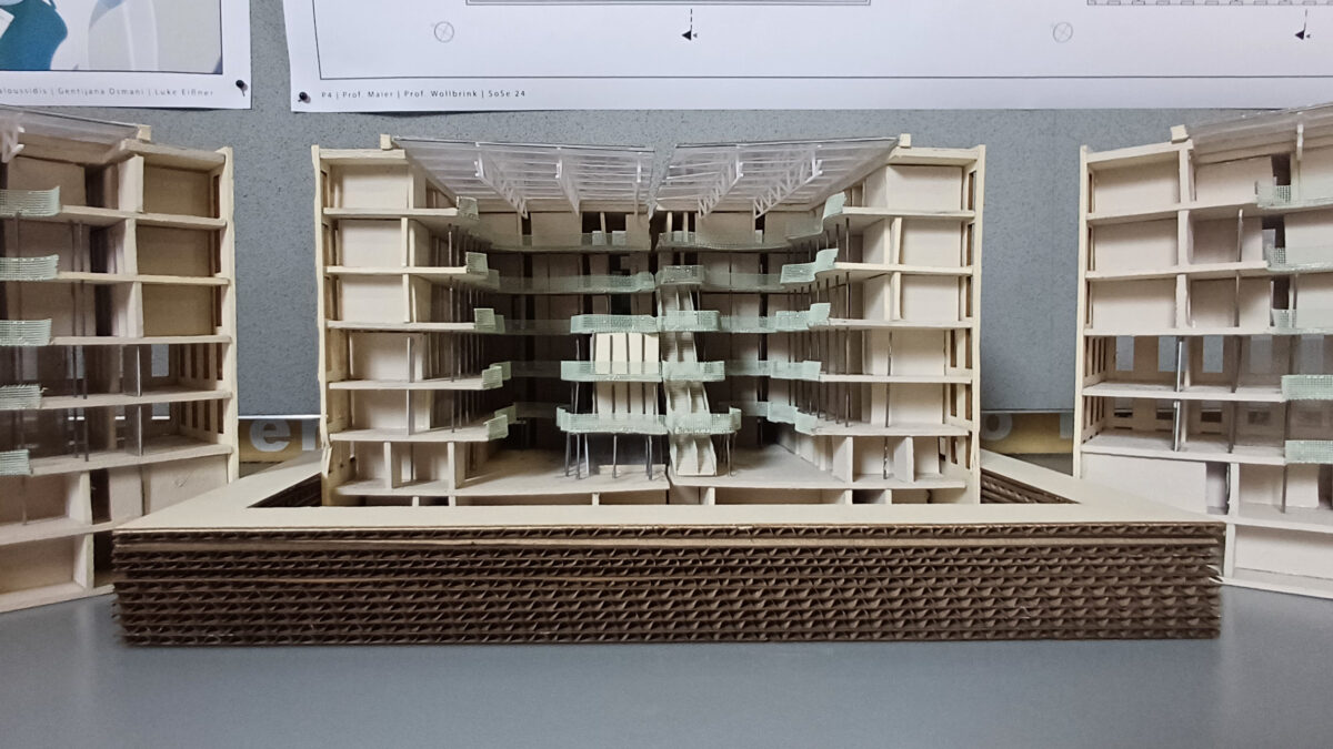 Im Sommersemester 2024 entwickelten Studierende des fba in einem semester- und studiengangsübergreifenden Entwurfsprojekt Konzepte für einen solchen zukunftsfähigen Neubau. Unter realistischen Rahmenbedingungen sind Lösungen entstanden, die weit über funktionale Anforderungen hinausgehen und zentrale Themen wie Nachhaltigkeit, Suffizienz, Nutzungsoffenheit und zirkuläres Bauen integrieren. Das Grundstück mit fünf Schauseiten sowie die enge Zusammenarbeit in interdisziplinären Kleingruppen stellten besondere Herausforderungen dar. Die Ergebnisse zeigen eine beeindruckende Vielfalt an tragfähigen Ansätzen.